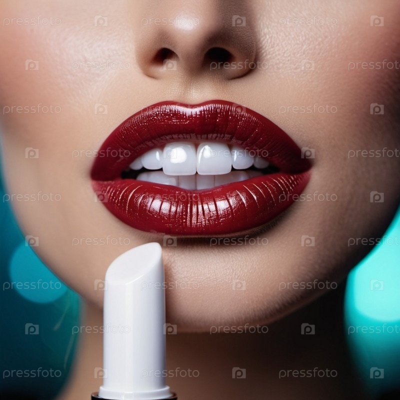 Замкнутые губы женщины или молодой девушки с мерцающей коричневой, бордовой или бордовой помадой. Губы слегка расставлены, открывая мельком белые зубы. Сексуальность чувственности. генерируемый