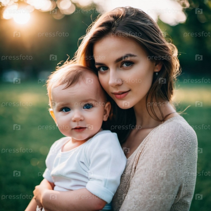 Мать с любовью смотрит на своего младенца, держа его близко на руках. Милый младенец спокоен. Любовь матери и ребенка. Счастливого детства. Семейные отношения, материнство и фертильность