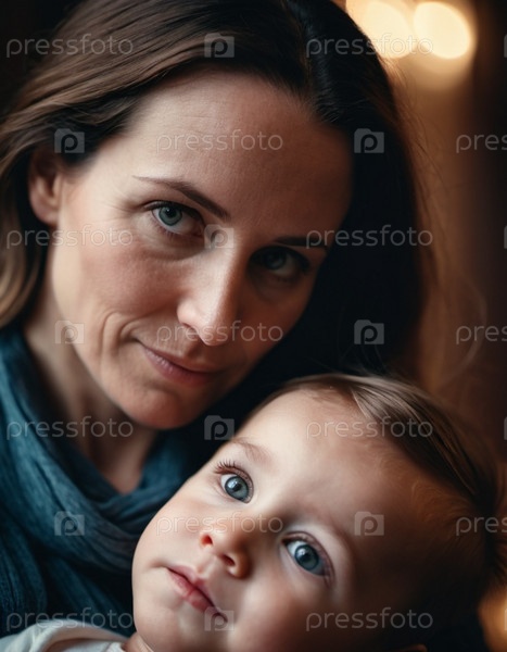 Мать с любовью смотрит на своего младенца, держа его близко на руках. Милый младенец спокоен. Любовь матери и ребенка. Счастливого детства. Семейные отношения, материнство и фертильность