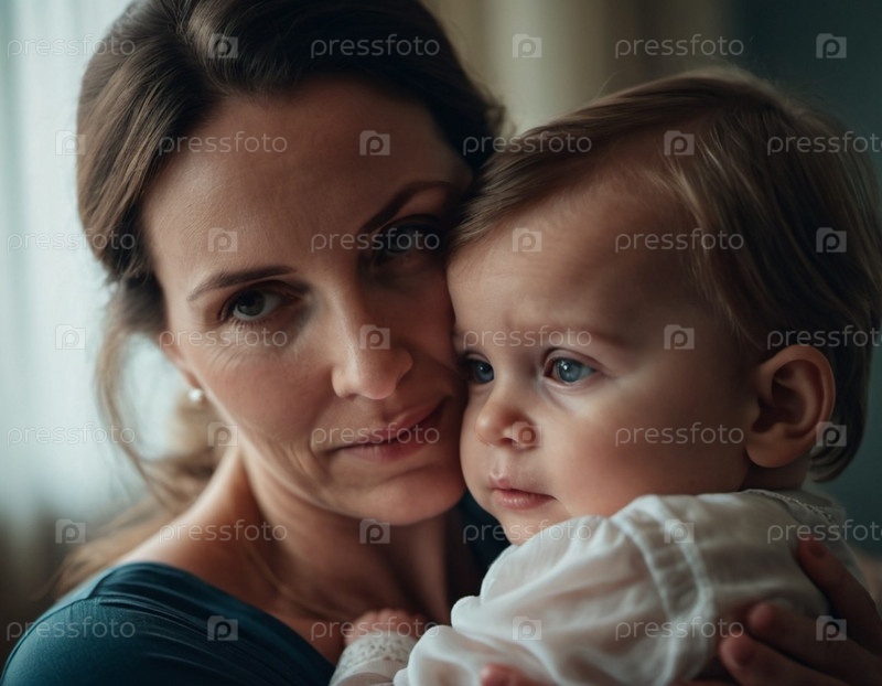 Мать с любовью смотрит на своего младенца, держа его близко на руках. Милый младенец спокоен. Любовь матери и ребенка. Счастливого детства. Семейные отношения, материнство и фертильность