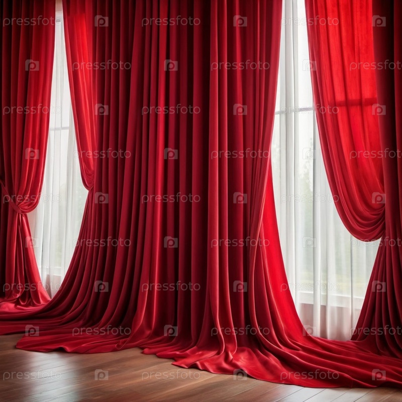 Занавес с мягкими плавными плавными складками. Глубокий красный цвет и роскошная текстура создают драматическую и элегантную атмосферу. Декорация и дизайн интерьера. Дорогой занавес из богатой ткани. ИИ