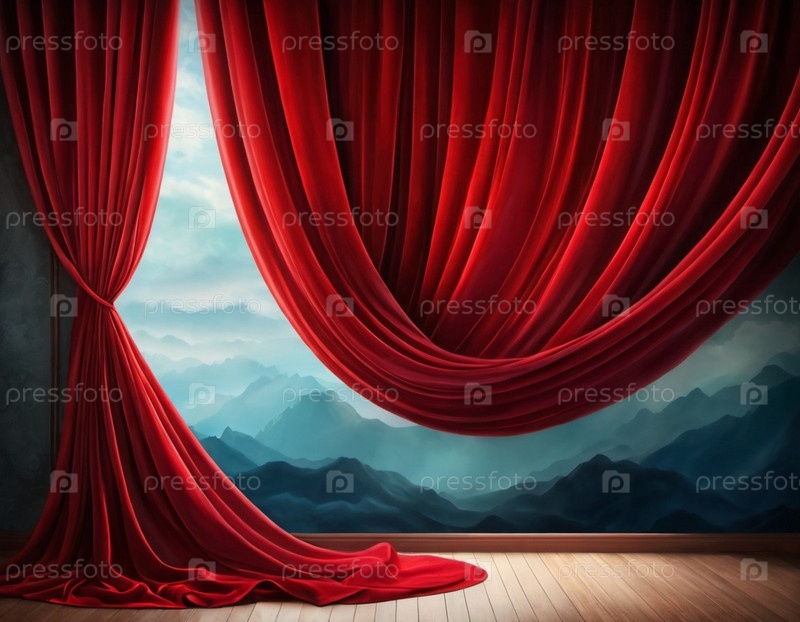Занавес с мягкими плавными плавными складками. Глубокий красный цвет и роскошная текстура создают драматическую и элегантную атмосферу. Декорация и дизайн интерьера. Дорогой занавес из богатой ткани. ИИ