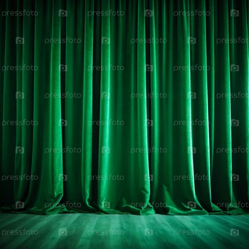 Занавес с мягкими плавными плавными складками. Глубокий зеленый цвет и роскошная текстура создают драматическую и элегантную атмосферу. Декорация и дизайн интерьера. Дорогой занавес из богатой ткани. ИИ