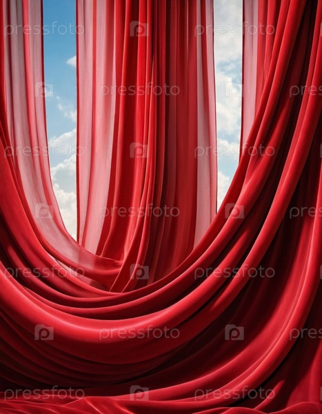 Занавес с мягкими плавными плавными складками. Глубокий красный цвет и роскошная текстура создают драматическую и элегантную атмосферу. Декорация и дизайн интерьера. Дорогой занавес из богатой ткани. ИИ