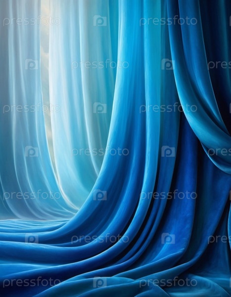 Занавес с мягкими плавными плавными складками. Глубокий синий цвет и роскошная текстура создают драматическую и элегантную атмосферу. Декорация и дизайн интерьера. Дорогой занавес из богатой ткани. ИИ