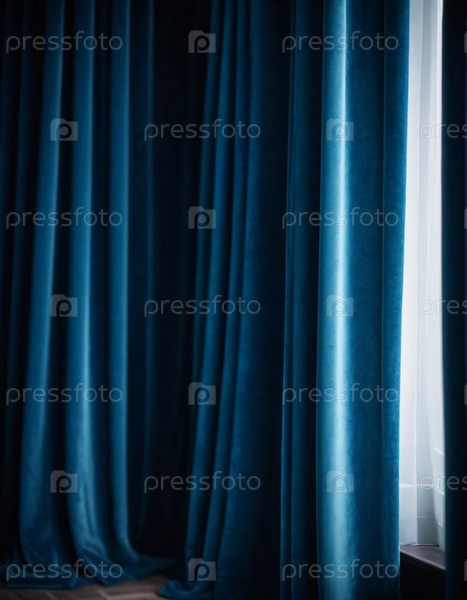 Занавес с мягкими плавными плавными складками. Глубокий синий цвет и роскошная текстура создают драматическую и элегантную атмосферу. Декорация и дизайн интерьера. Дорогой занавес из богатой ткани. ИИ