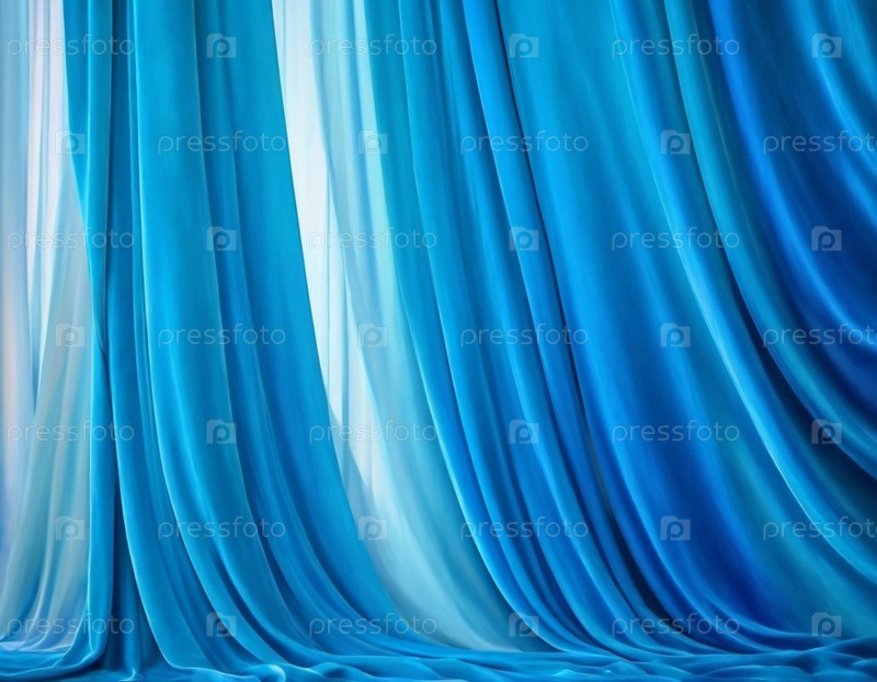 Занавес с мягкими плавными плавными складками. Глубокий синий цвет и роскошная текстура создают драматическую и элегантную атмосферу. Декорация и дизайн интерьера. Дорогой занавес из богатой ткани. ИИ