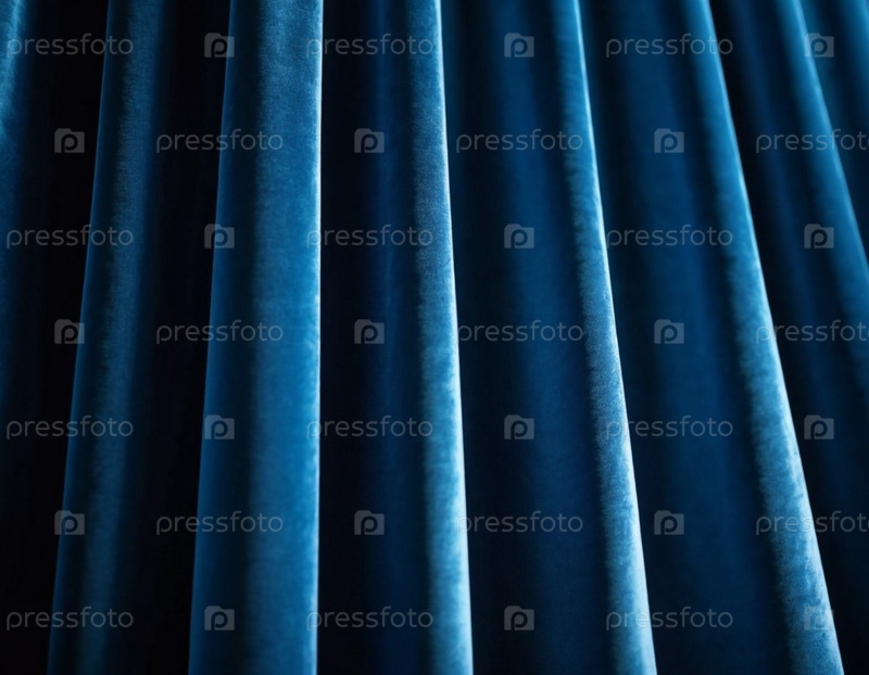 Занавес с мягкими плавными плавными складками. Глубокий синий цвет и роскошная текстура создают драматическую и элегантную атмосферу. Декорация и дизайн интерьера. Дорогой занавес из богатой ткани. ИИ
