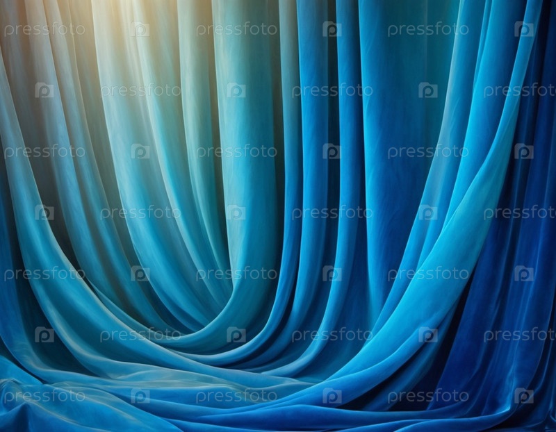 Занавес с мягкими плавными плавными складками. Глубокий синий цвет и роскошная текстура создают драматическую и элегантную атмосферу. Декорация и дизайн интерьера. Дорогой занавес из богатой ткани. ИИ