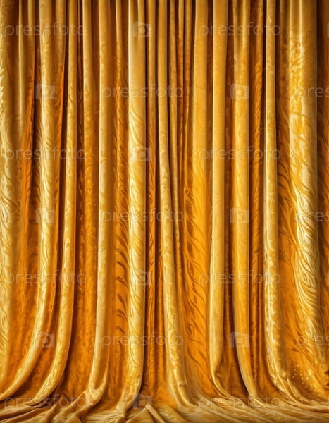 Занавес с мягкими плавными плавными складками. Глубокий желтый цвет и роскошная текстура создают драматическую и элегантную атмосферу. Декорация и дизайн интерьера. Дорогой занавес из богатой ткани. ИИ