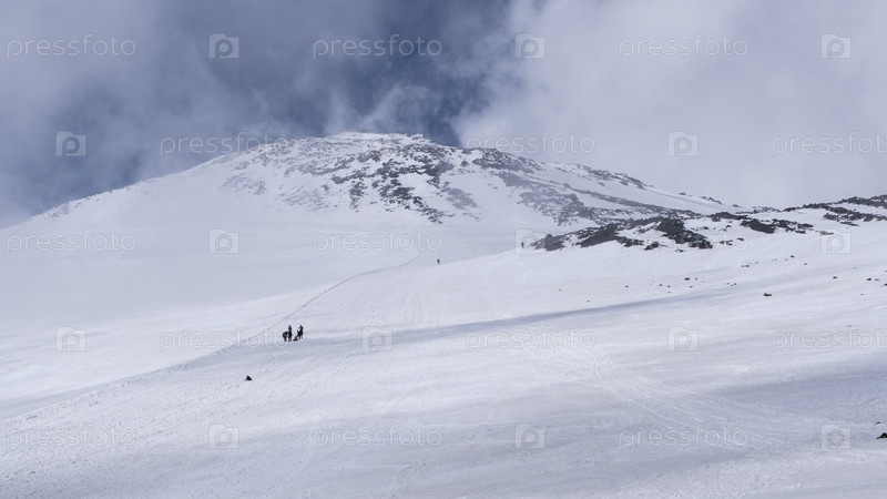 Силуэты альпинистов на склоне во время восхождения на Эльбрус