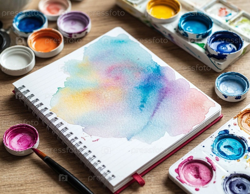 Акварельная стирка в блокноте. Сгенерированный ИИ