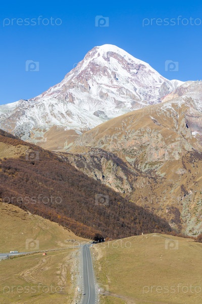 Вид на змеиную дорогу, ведущую к горе Казбек в Грузии