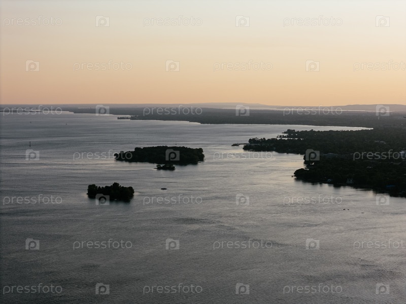 Вид с воздуха на полуостров маяка Rene-Levesque Park в Лачине, Монреаль вдоль реки Святого Лаврентия на закате. г