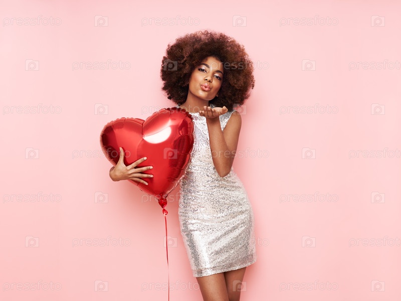 Красивая молодая афроамериканка с воздушным шаром в форме сердца
