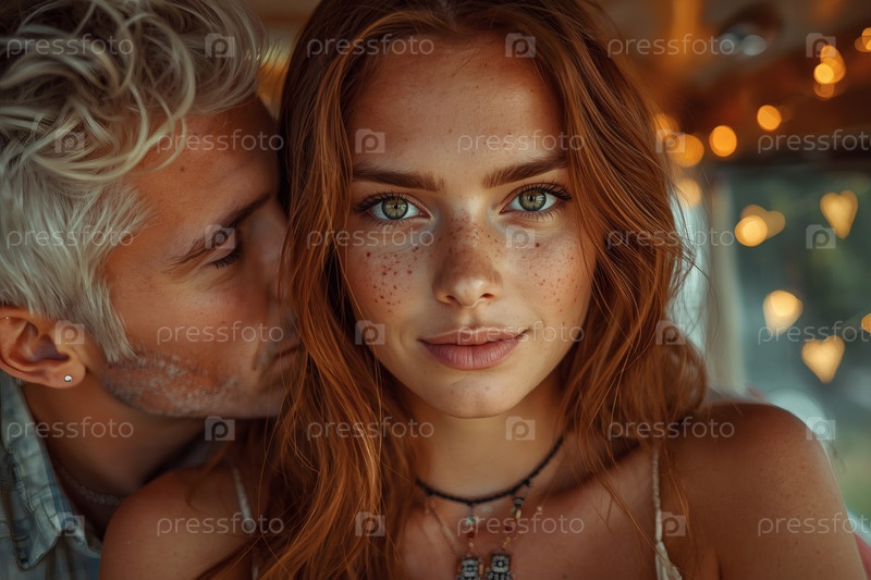 Красивая молодая рыжеволосая женщина с веснушками и ее любимый мужчина путешествуют внутри автодома
