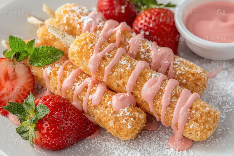 Домашний торт, засыпанный розовым шоколадом и свежей клубникой и мятой. Торты на светлом фоне. Свежеиспеченный десерт