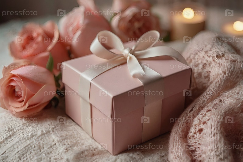 Концепция Дня святого Валентина. Закрытие рук женщины, держащей в форме сердца подарок с атласным луком на День святого Валентина