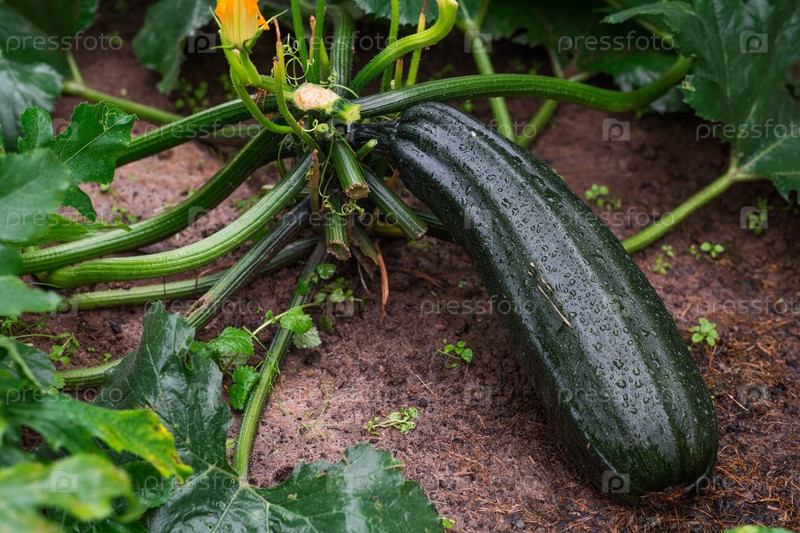 Рост кабачков в садовой кровати. Концепция выращивания и сбора урожая летом и осенью