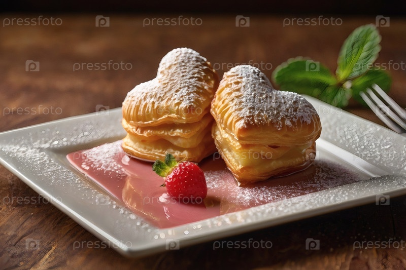 Домашние торты в форме сердца с розовым шоколадом и свежей клубникой. Пироги в форме сердца на светлом фоне. Свежеиспеченный десерт на День святого Валентина