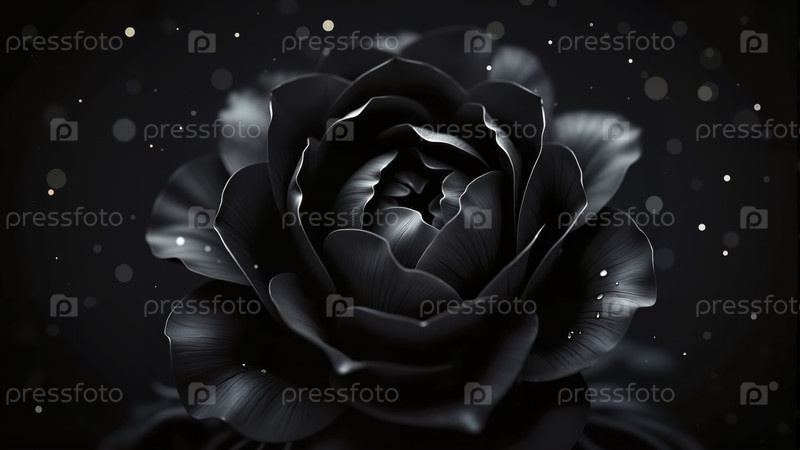 Элегантный макрос черной розы с каплями росы на темном фоне, таинственный готический цветок крупным планом