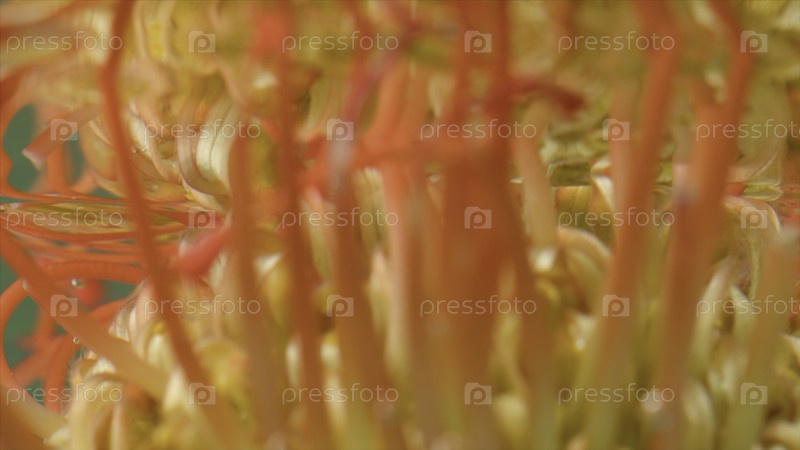 Близкое отражение цветка под водой. Запасные кадры. Зеркальное изображение цветка в воде. Экзотический цветок на поверхности чистой воды