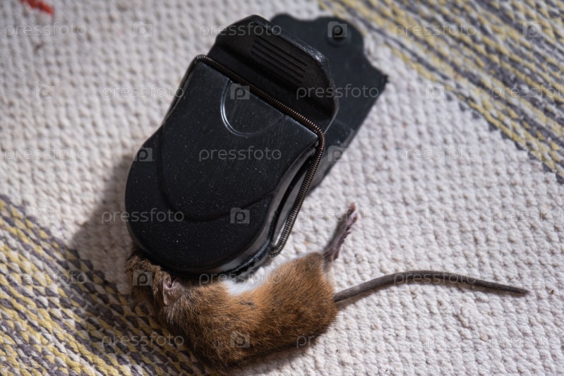 Мертвая мышь застряла в пружинном механизме мышеловки дома. Защита и контроль от грызунов