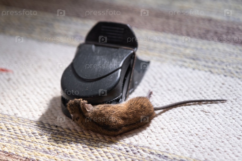 Мертвая мышь застряла в пружинном механизме мышеловки дома. Защита и контроль от грызунов