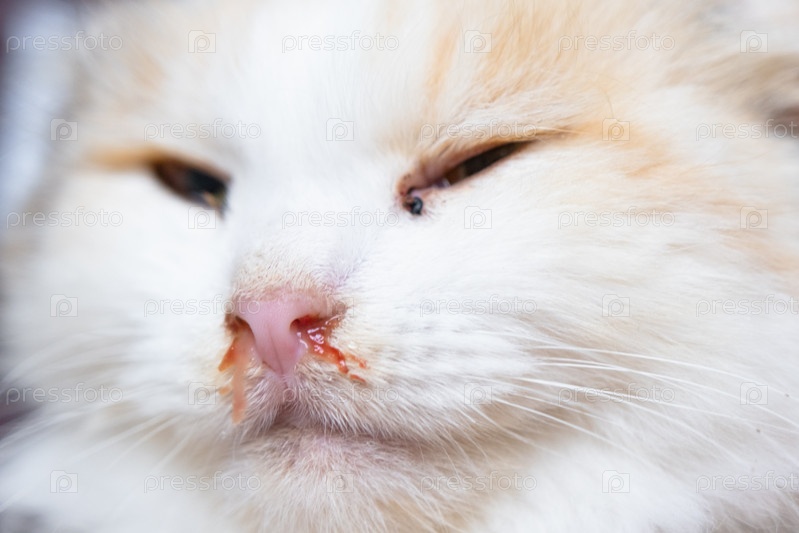 Кровавые сопли из носа белой кошки, ветеринарное лечение аллергии, насморк, повреждение носовой перегородки, воспаление и инфекция