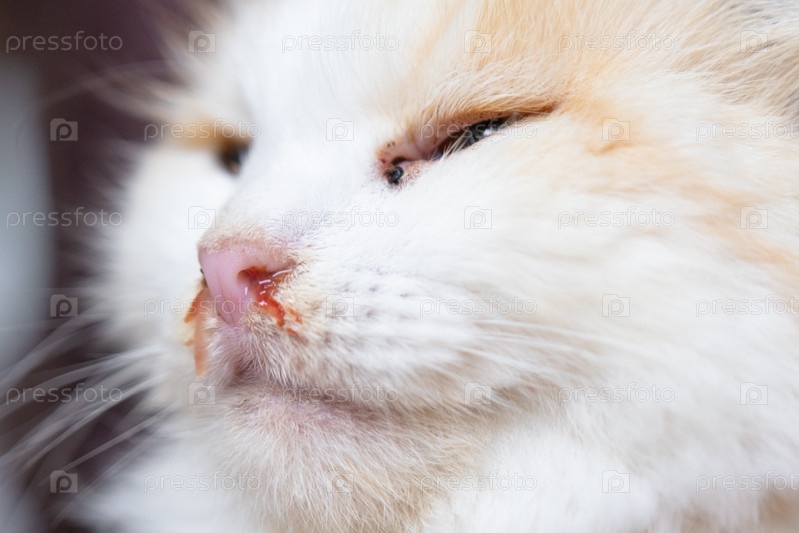 Кровавые сопли из носа белой кошки, ветеринарное лечение аллергии, насморк, повреждение носовой перегородки, воспаление и инфекция
