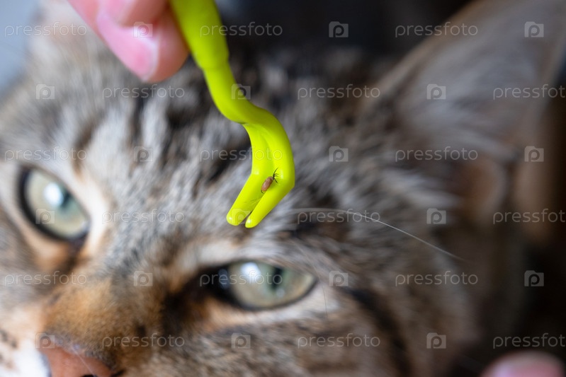 Извлеченный клещ на инструменте удаления клещей кошки