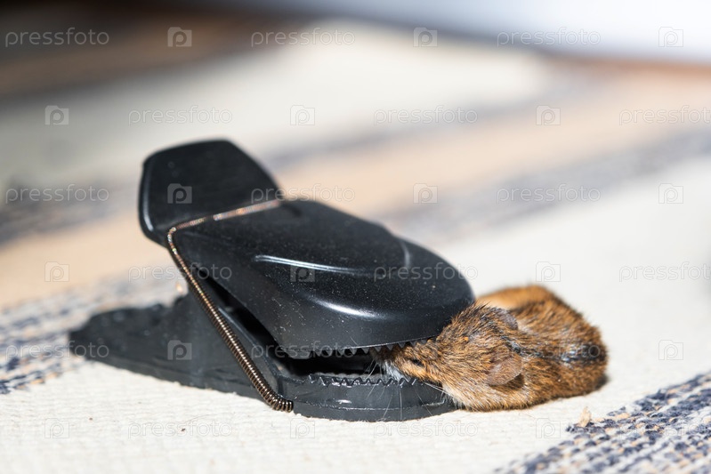 Мертвая мышь застряла в пружинном механизме мышеловки дома. Защита и контроль от грызунов