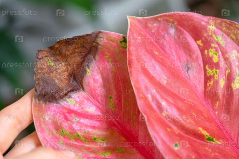 Проблемы при выращивании на красном листе аглаонемы – листья, пораженные черной гнилью, перелив растения, гниение корней