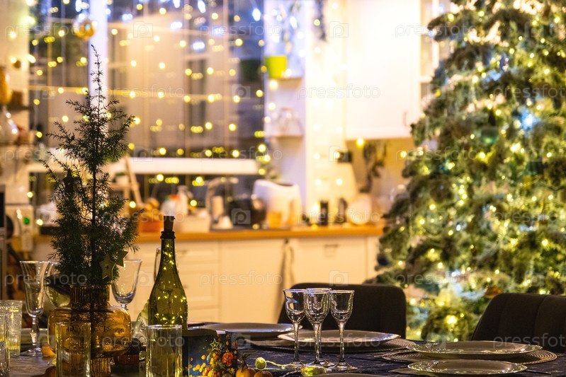 Праздничный интерьер дома оформлен на Рождество и Новый год в стиле лофт с черной плитой, камином, рождественской елкой. Теплый студийный номер с установленным столом, горящее дерево, уют и отопление дома
