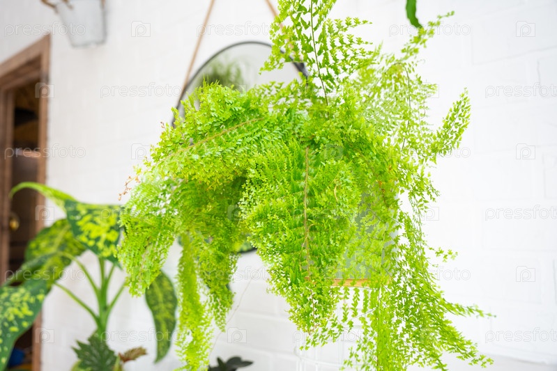 Пышный папоротник в белом лофт-стиле интерьера. Нефролепис Мариса - разнообразный декоративный папоротник
