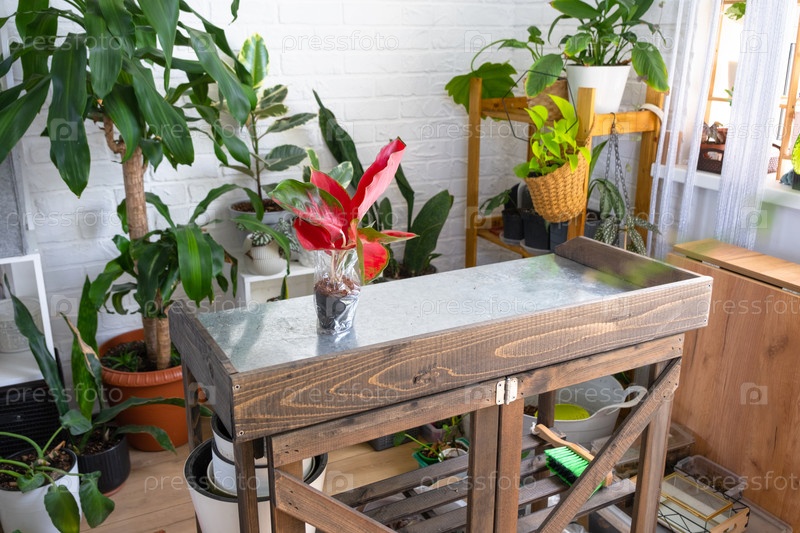 Цветочный стол для ухода и трансплантации горшечных растений, домашнее хобби для выращивания и продажи растений в интерьере зеленого дома