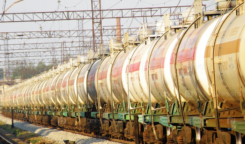 Железнодорожные цистерны с нефтью стоят на вокзале