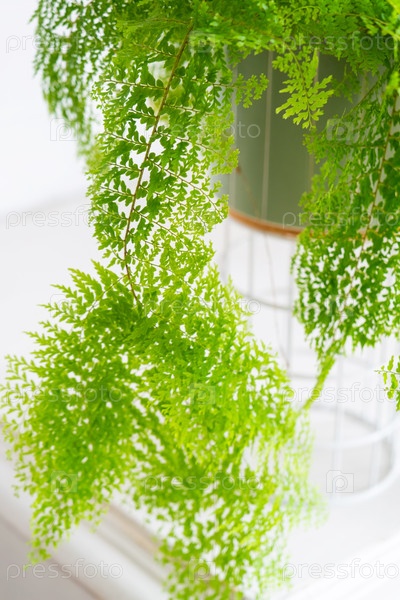Пышный папоротник в белом лофт-стиле интерьера. Нефролепис Мариса - разнообразный декоративный папоротник
