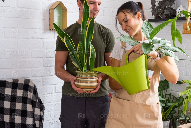Мужчина и женщина заботятся о самодельных горшечных растениях, собственном бизнесе