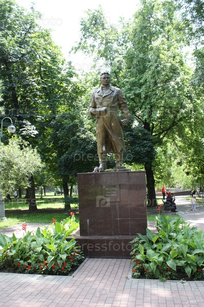Бронзовый памятник в летнем парке