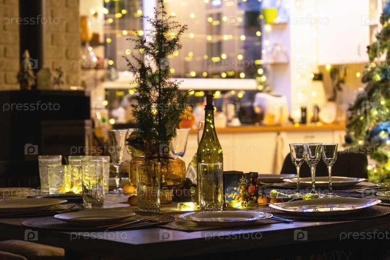 Праздничный интерьер дома оформлен на Рождество и Новый год в стиле лофт с черной плитой, камином, рождественской елкой. Теплый студийный номер с установленным столом, горящее дерево, уют и отопление дома