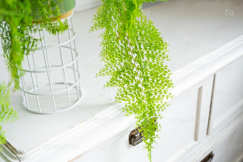 Пышный папоротник в белом лофт-стиле интерьера. Нефролепис Мариса - разнообразный декоративный папоротник