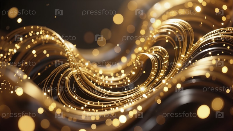 Абстрактные струящиеся золотые волны с сверкающим блеском и мерцающим светом на роскошном темном фоне