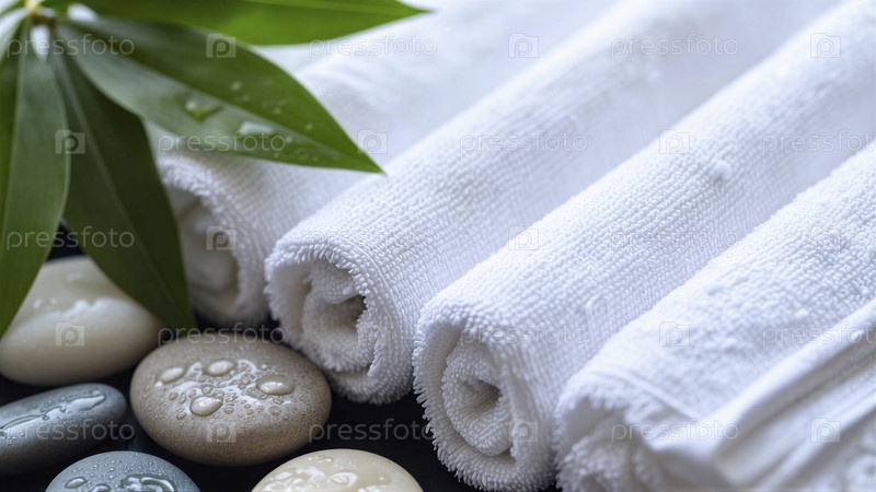 Расслабляющая спа-сцена со свежими полотенцами и камнями дзен