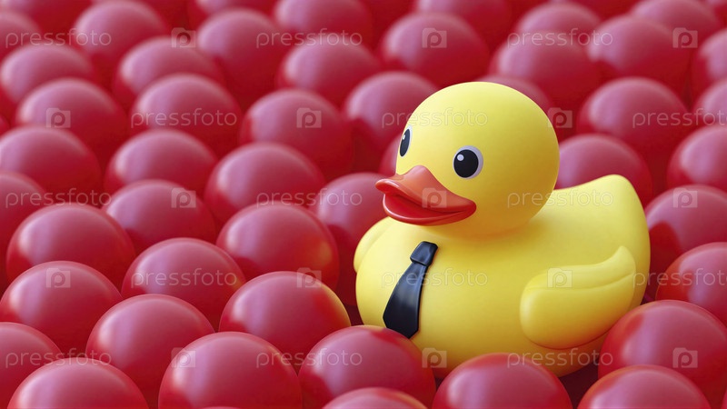 Желтая резиновая утка в красных шарах, бизнес-концепция