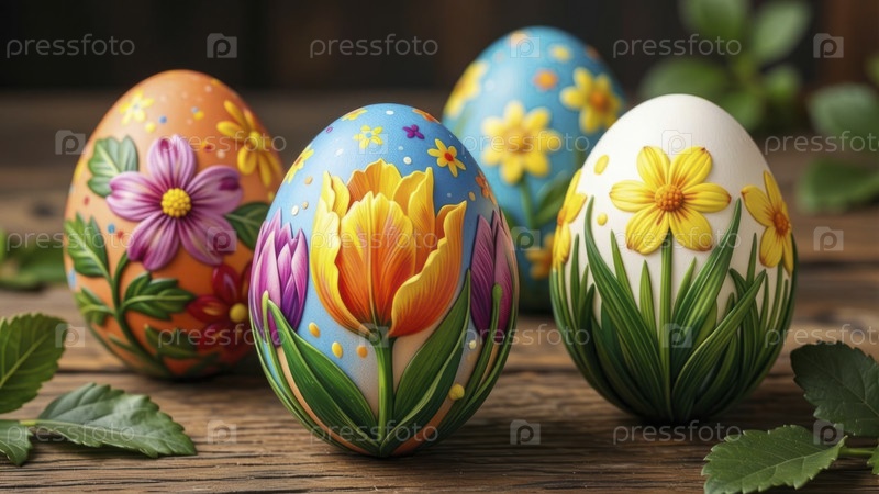 Цветные пасхальные яйца с цветочным дизайном