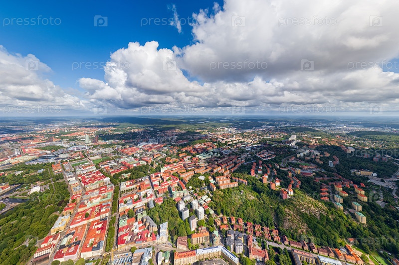 Гетеборг, Швеция. Панорама города летом в пасмурную погоду. Вид с воздуха