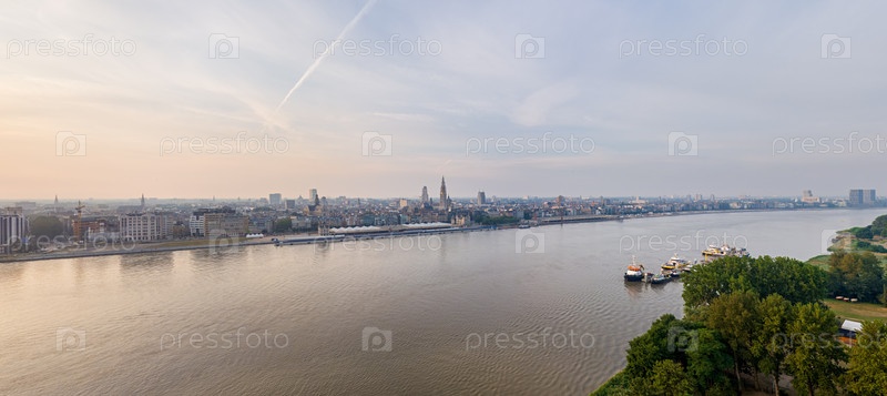 Антверпен, Бельгия. Панорама города. Летним утром. Вид с воздуха
