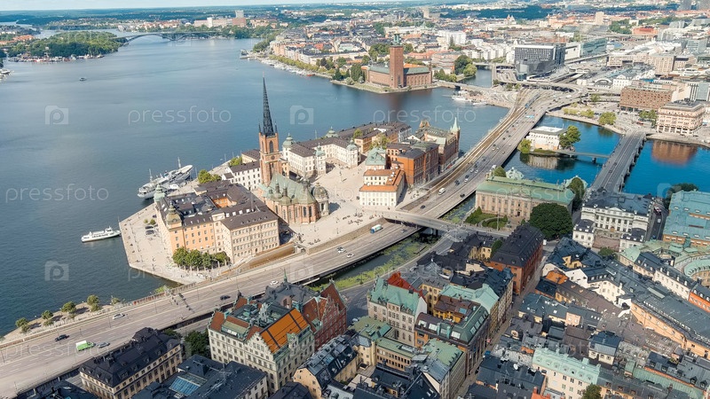 Стокгольм, Швеция. Старый город (Gamla Stan). Панорама города. Летний день, Aerial View