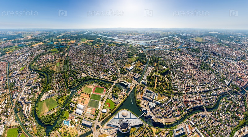 Страсбург, Франция. Панорама города в летний день. Солнечная погода. Вид с воздуха